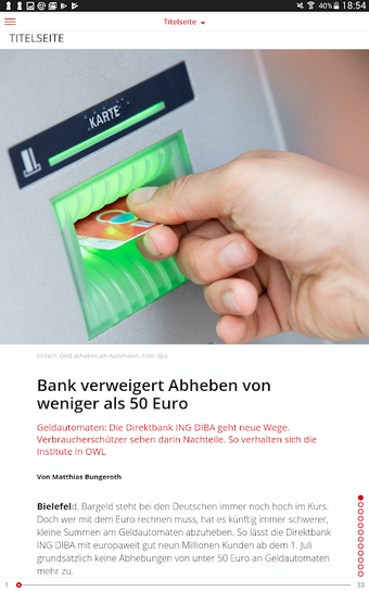 モバイルデバイス用の新しいアプリは、ニュースと広告を含む完全な新聞を提供します。コンテンツは発行日付のリスト形式で表示されます。また、あなたの地域や都市の現在のイベントについて知ることができ、ドイツの他の地域のニュースも読むことができます。